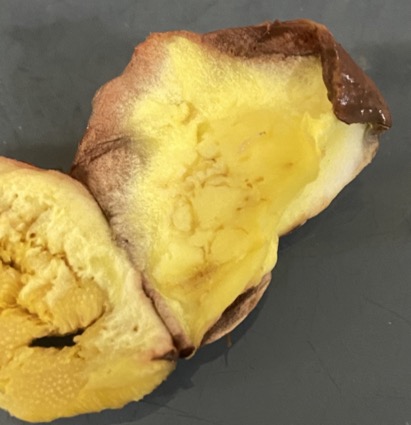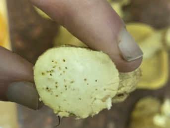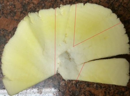 להסתכל בשני הצדדים של החתך. את הרגל יש לחתוך לרוחבה עד שאין חורים/מחילות של רימות (כולל בחלק החיצוני של הרגל). כמו כן מומלץ להסיר את הכיסוי של הכובע ולוודא שאין חורים בגב הכובע (לא הכרחי).