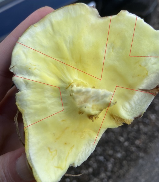 בכל חתך יש לבדוק את בשר הפטריה מול אור השמש או פלורוסנט חזק, ולסובב את החתך בכמה זוויות מול האור כדי להבחין אם יש חורים/מחילות. במידה ונתגלו חורים/מחילות, כדי "להציל" כמה שיותר חלקים מהפטריה ללא רימות שניתן לאכול, אני ממליץ לחתוך לרדיוס הכובע בין החורים את השטחים הגדולים ביותר שלא מצאנו בהם חורים, ולבדוק שוב (איור 3).